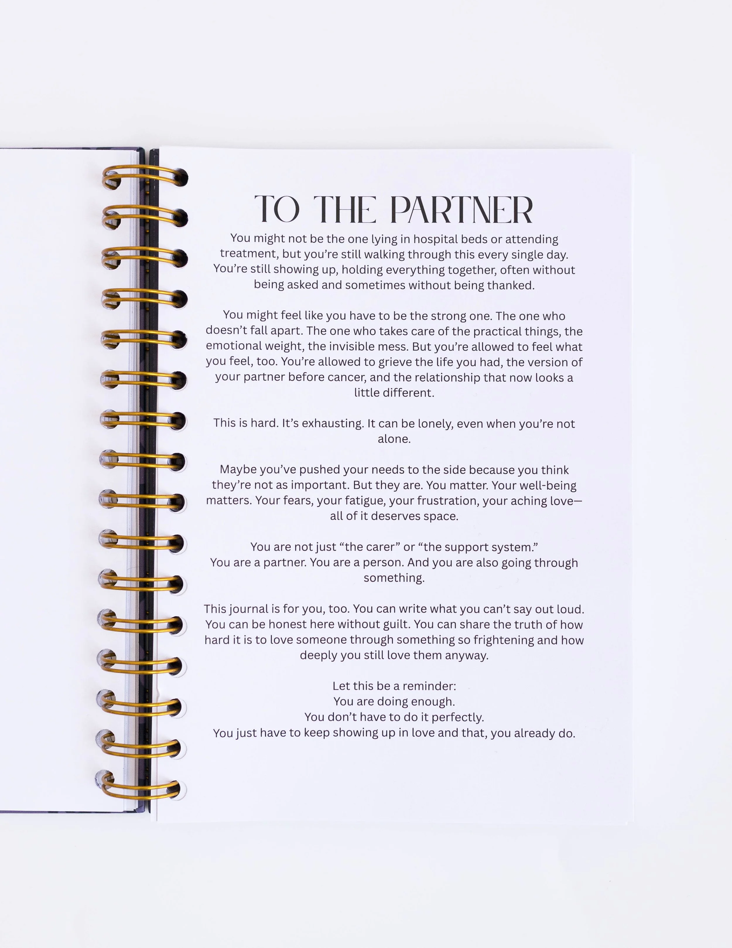 The Partner Pages is a shared journal designed to help couples communicate during one of the hardest seasons of their lives.